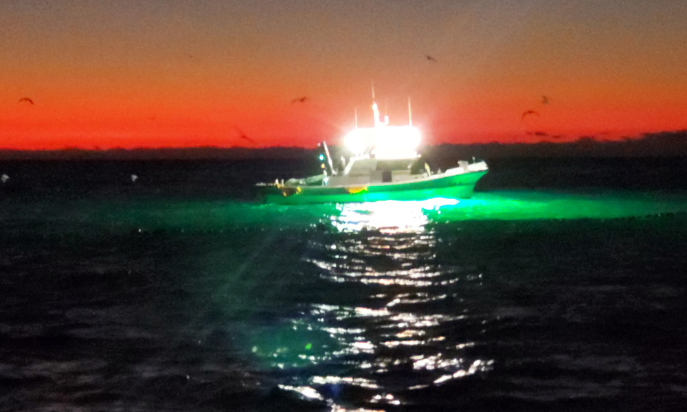 チームワークの仕事旋網漁は複数の船が連携して行うチームワークが重要な仕事です。 網を揚げる瞬間や魚が一気に上がったときの迫力は、海の現場ならではの醍醐味。
